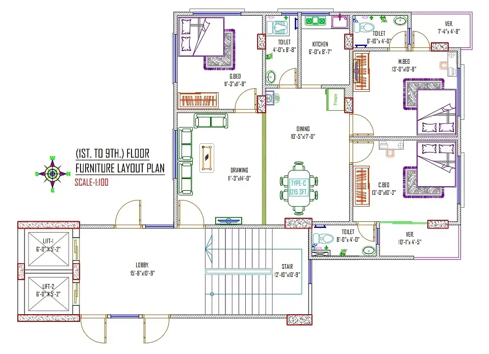 খোলামেলা লেআউট: ড্রয়িং-ডাইনিং থেকে শুরু করে প্রতিটি রুমের মাপ অত্যন্ত পরিকল্পিত, যার বিস্তারিত লেআউট ছবিতে দেওয়া আছে।